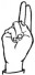 На ћирилици написано КАЋА ЏУНИЋ састоји се из 9 слова [?]. Исписано ћириличном једноручном азбуком за глувонеме: